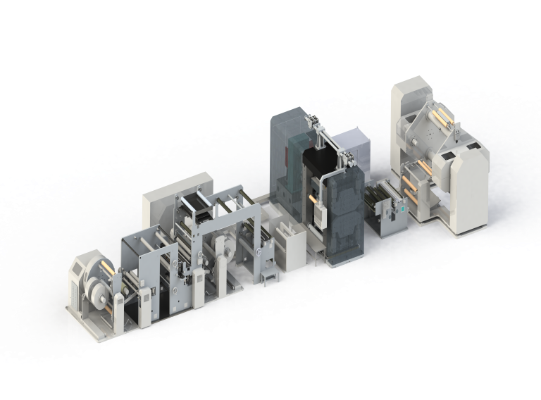 轧分一体机采用高速可靠自动换卷收放卷系统,实现稳定准确接带、换卷,提高生产效率。高精度辊压系统,保证极片轧制精度及稳定性,配有除皱系统,运行可靠,张力精度高,保证极片横向均匀性,并配有高精度分切系统。