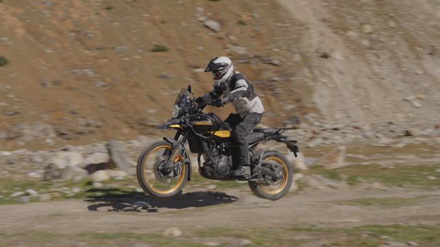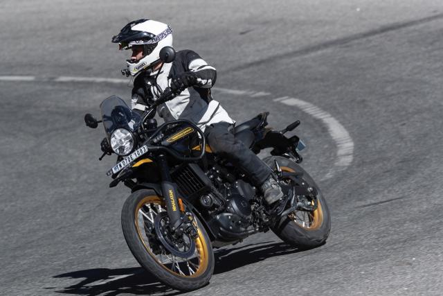 Rolling on a 21-inch front wheel, and 17-inch rear, the Himalayan 450 has 200mm of wheel travel at both ends, with the ride height set at 230mm.