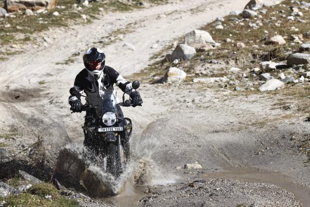 There is a caveat to this criticism though, and that’s the altitude we are riding at. I’ve only ever ridden 411cc Himalayan not much more than sea level. Up here, sometimes above 10,000 feet, the air has a very different density and I think it’s massively sapping the power. Royal Enfield is planning a UK launch event next year, that is going to be a much more realistic impression of how the Sherpa 450 performs.