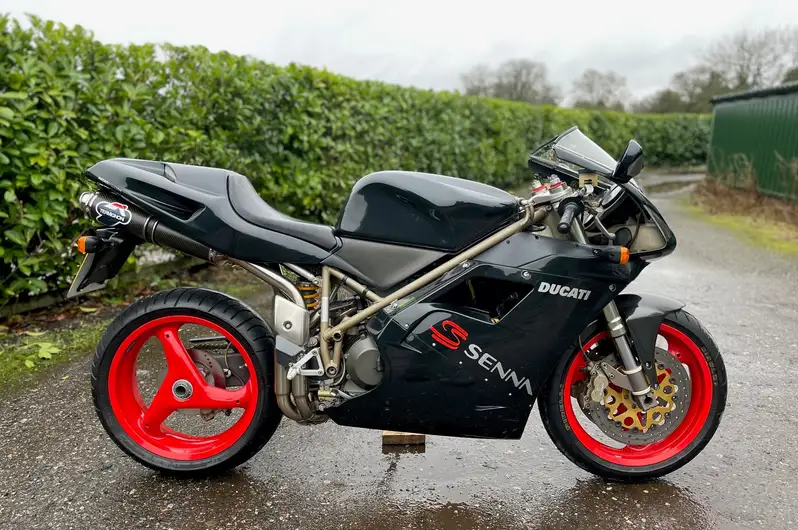 The 916 Senna III pictured here dates back to 1999, and has one previous owner, with the current owner having had the bike since 2001. It comes with the iconic standard paint job - all-grey with the distinctive ‘Senna’ logo on the fairing, not dissimilar to the special edition MV Agusta F4 dedicated to the same man.