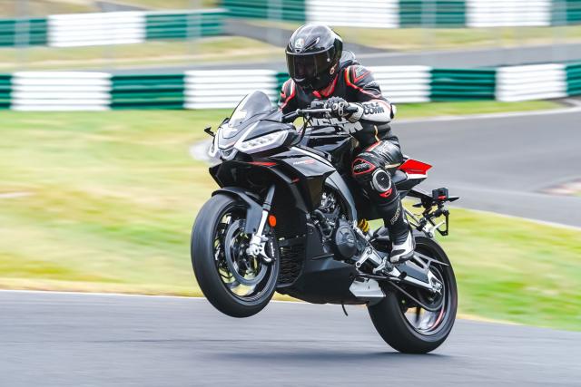 The Italian brand did this by focusing not on the exhaust system of the bike and instead looked to the inlet of the machine. With tuned inlet trumpets and a vented and fairly open airbox, the induction noise of the Tuono 660 is intoxicating, but when you aren’t sat on the bike you can barely hear it, and on the stock exhaust the bike easily passed muster with the noise testers at a 105 dB track day at Cadwell Park.